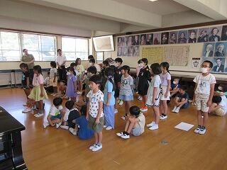 毎日大変暑い日が続いており、熱中症を避けるために音楽室で行いました。