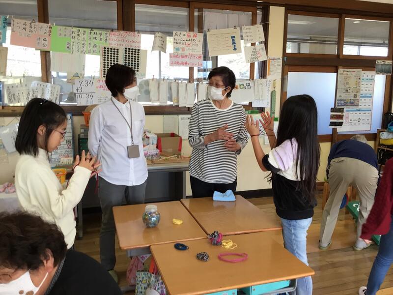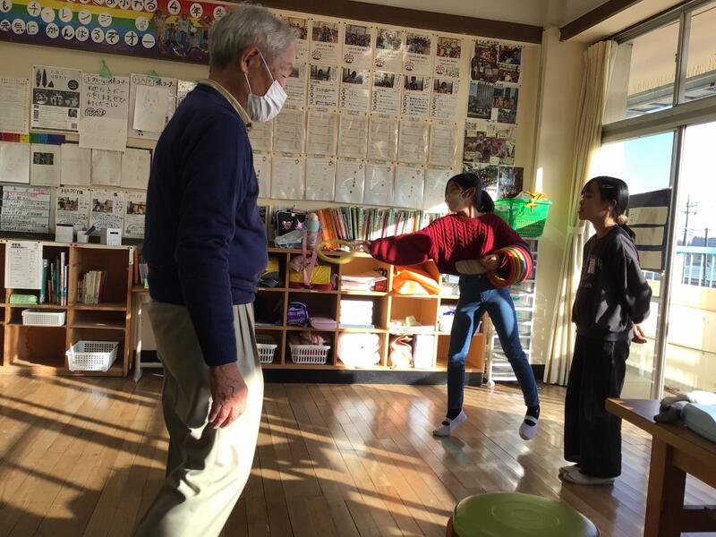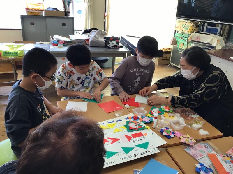 12月8日に西方町の老人クラブの方が来校してくださり,4年生とのふれあい交流会を行いました。「折り紙」「おはじき・あやとり・お手玉」「輪投げ」のブースに分かれて行いました、折り紙ブースでは,こまとクリスマスツリーを教えていただきました。子ども達にとても丁寧に教えてくださり,完成すると大喜びでした。おはじき・あやとり・お手玉ブースでは,お年寄りの方に見本を見せていただいたり,知らなかった遊び方を教えていただいたりしました。輪投げブースでは,投げ方のコツをいろいろと教えていただきながら,楽しくゲームに取り組みました。