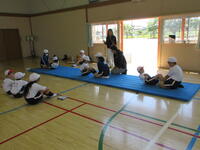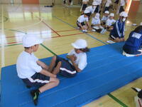 5月14日(火)の真名子っ子タイムは、体力づくりでした。体育館で長縄とびを行いました。