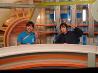 玄関では、イメージキャラクターの「きゅーちゃん」が出迎えてくれてました!そして、きゅーちゃんと一緒に番組のオープニング撮影も行いました!