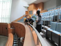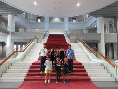 最上階で、お弁当を食べた後、職員の方に、栃木県のことや県庁で働いている人のこと、そして、栃木県の予算の使い方などを話し合いする議会棟を案内していただきました。