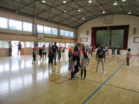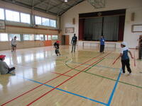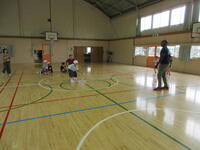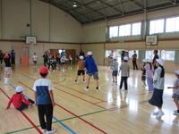 昼休み、ALTの皆さんも参加して全校ドッジボール大会