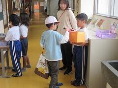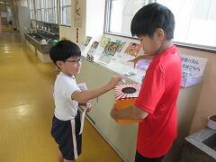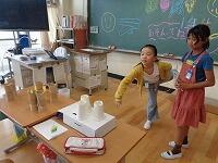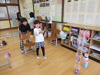 10月23日(水)に、2年生が生活科で作ったおもちゃを1年生に遊んでもらいました。射的やけん玉、玉入れ、くじ引き、魚釣り、ぴょんぴょん紙コップ、輪投げなどのおもちゃがありました。楽しそうに活動する1・2年生の姿がたくさん見られました。