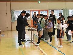 初日の真名子っ子タイムには集会が行われ、図書委員による『劇』の発表と「本の帯の部」「読書記録の部」の各部門の学年代表者、「読書記録100冊達成者」の表彰を行いました。