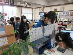 スタンプラリーに挑戦する子ども達や、先生のおすすめの本や帯つきの本を借りる子ども達など、貸出中の本がふえました。図書委員の子ども達は、各担当の場所で大活躍です。