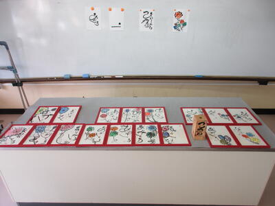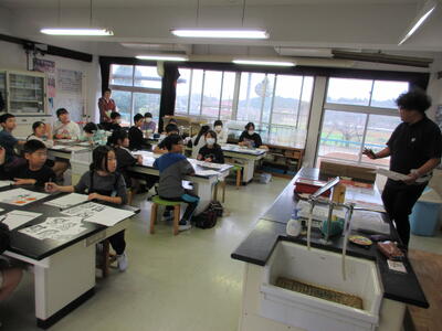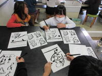 己書(おのれしょ)道場師範の方をお招きした体験学習を行い作品を制作しました。