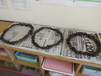 つぎは、飾りつけです。どんな素敵なリースになるか楽しみです