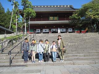気持ちよい秋晴れの中、輪王寺や五重塔・陽明門等を見ることができました。見学の後は、お土産屋さんで買い物をして、大谷川公園でお弁当を食べました。帰りのバスの中では、日光で楽しかったことをみんなで話しました。