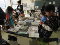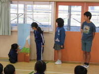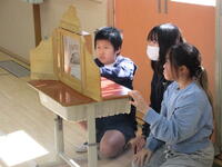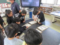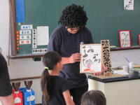その後1~3年生 と4~6年生にわかれ読み聞かせを実施しました。大型絵本や紙芝居(ケース付)など、普段あまり目にしないため、全児童興味深く童真剣に読み聞かせを聞いていました。