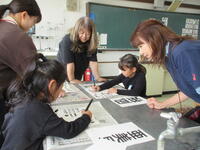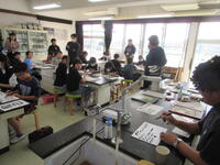 己書とは「味のある文字と絵、それが『己書』です。己(おのれ)の書ですから、ルールはなし。書き方や書き順にとらわれることなく、自分の想いのまま自由に筆を走らせる新感覚の書、それが己書です。」(己書ホームページから引用)だそうです。栃木県、東京都、神奈川県でご活躍されている6名の師範の方に御指導いただきました。