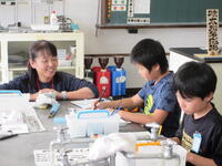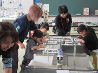 合同で授業を行うことによって、教科のねらいに迫ることができるだけでなく、2年生が1年生に教えてあげる姿や創作活動に興味をもち「もっと太くしたい!」とつるの本数を増やし主体的に取り組む姿などが見られ、さまざまな教育効果が期待できる学習ができます。