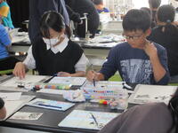 今回は、自分の名前と学年の数だけお地蔵様を描きました。それぞれが創造的に発想や構想し、楽しい作品が仕上がりました。