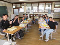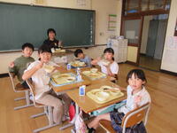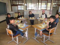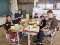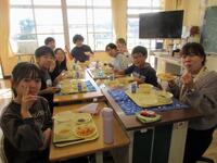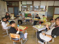 給食の時間は、各学年に師範の方に入っていただき一緒に昼食を食べました