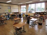 子どもたちは、登校班に分かれ各教室で待機しています。