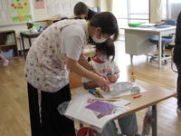 3年生の図画工作科では、参観に来校していただいた方に作品制作を手伝っていただきました