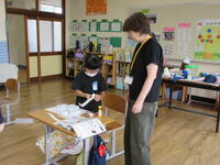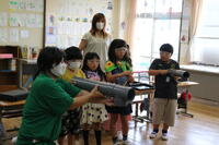 1年生は、割りばし鉄砲を作って的当てを行いました