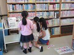 1年生のオリエンテーションを実施しました。図書室での約束の説明のあと、どんな本があるか図書室を探検しました。はじめての図書室に興味津々の様子です。探検のあとは実際に本を選び借りてみました。