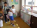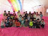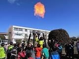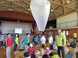 次に、ミニ熱気球を作りました。大きなビニル袋と紙コップ、たこ糸があれば簡単に作れます。初めは、難しくなかなか作れないグループもありましたが、友達と協力して完成させることができました。完成すると、熱い空気を袋に送り、準備開始!「3・2・1」とみんなでかけ声をかけると、勢いよく天井まで浮かび上がりました。みんな、自分たちのミニ気球が飛び、とても喜んでいました。