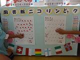もうすぐ運動会、子どもたちは紅が勝つか、白が勝つか、わくわくしながら練習に取り組んでいます。そのような中、三鴨小では、もう一つのニコリンピックが新館二階の図書室で開催されています。その名は、「図書館ニコリンピック」です。