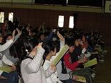 最後に校歌を斉唱しました。元気いっぱいの歌声が体育館に響きました。