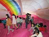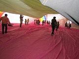 世界に一つしかない「ハート型の熱気球」です。空気を入れるとみるみる膨らみ、中は別世界のようでした。