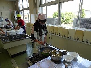 「いろいろな食品のいため方が分かり,栄養のバランスを考えた朝食のおかずを作れるようになろう」のめあてのもと,先週,スクランブルエッグ作りの調理実習を行いました。