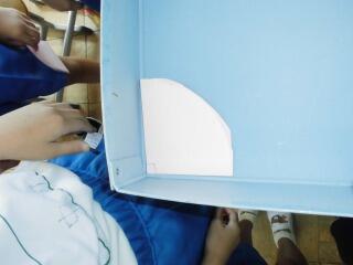 発表するときは、2人で持ってあげたり、