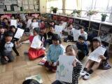 楽しみながら、お友達の絵のお話を聞いています。