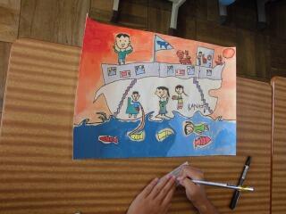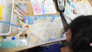 教科書のイラストを生かして、自分だけの物語を作る授業です。