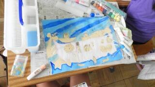 1,2組合同で行った図工の題材「だんだんだんボール」。