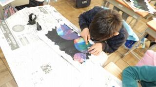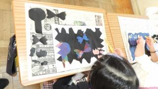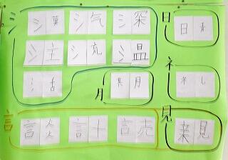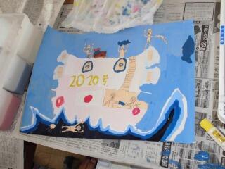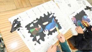 「班で話し合ってつなげてもいいよ。」と言うと、大きく2つの共同作品になりました。