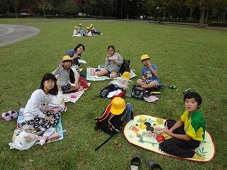 昼食は、永野川緑地公園で。一面に広がるシロツメクサがきれいでした。