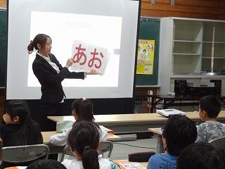 手話体験では、手話で挨拶をしたり名前を表したりしました。また、ひらがなの指文字を学習しました。
