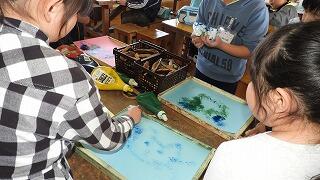 総合の「みかもエコキッズ」という環境について考える学習で、給食で出る牛乳パックを集めて紙作りをしました。