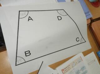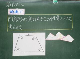 今日のめあては「四角形の角の大きさの性質について考えよう。」です。