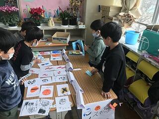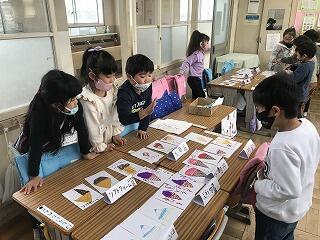 国語科『ものの名まえ』の学習で、お店屋さんごっこをしました。上位語でお店の名前を決め、下位語で商品を用意しました。