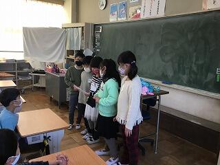 給食の時間には、図書委員が「14ひきのあきまつり」の読み聞かせをしました。