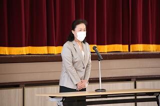 感染症対策として,初めてオンラインで各教室をつなぎ,始業式を行いました。