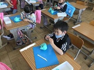 アイス屋さん、お菓子屋さん、花屋さん、洋服屋さん、スポーツ用品屋さん、ジュース屋さんになり、1年1組の教室を商店街にしてお買い物を楽しみました。