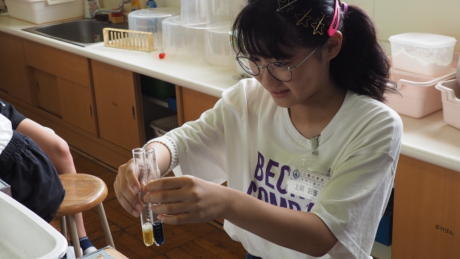 おっ!!だ液を入れた方の試験管には、でんぷんの反応がありませんでした。