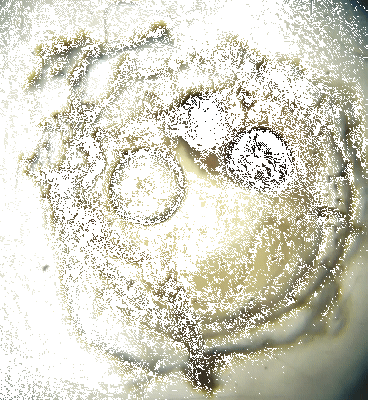 「塩のまわりがぼわっとなってるのは、塩がとけたせいだよ。」