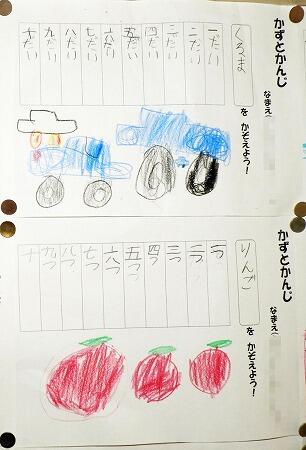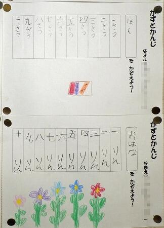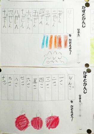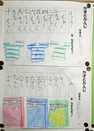 1年生の掲示板です。国語の授業で学習した「かずとかんじ」です。