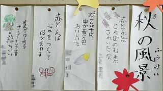 3年生のテーマは「秋の楽しみ」です。「秋といえば」を考えて俳句にしました。