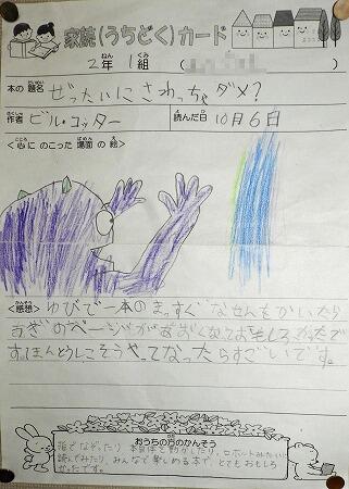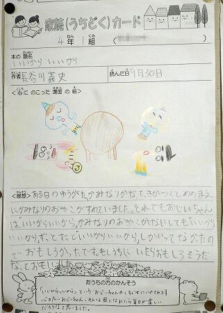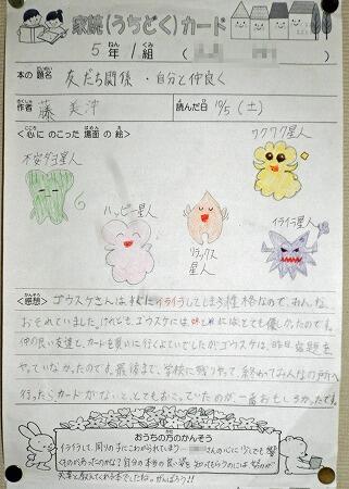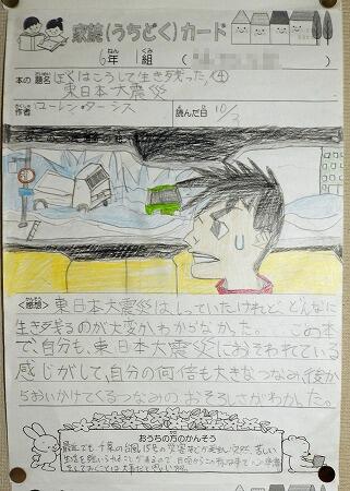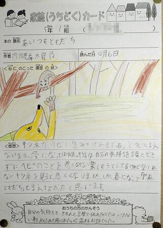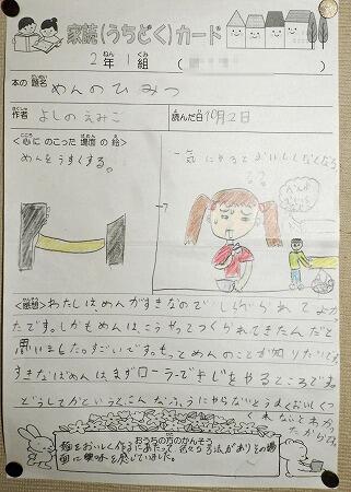 廊下の掲示物より(家読カード1,2年生)