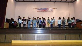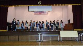 校歌斉唱の後各学年の発表です。