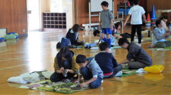 5時間目5年生はしめ縄づくりをしました。
