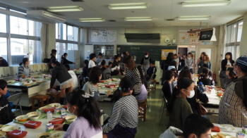 陶芸教室の後は、親子給食。
