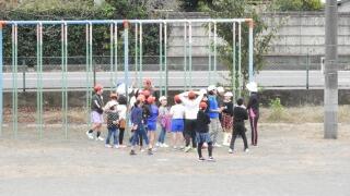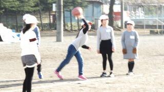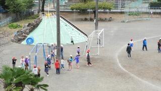 1時間目1年生は校庭でドッジボールをしていました。