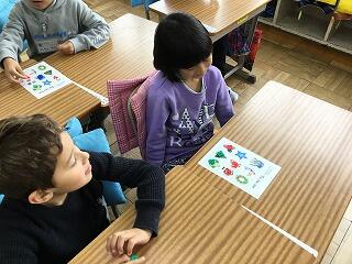 そして、今日13日(金)は、外国語活動でクリスマスの学習をしました。「We Wish A Merry Christmas」を歌ったり、「Tic Tac Toe」ゲームをしたりしながら、一足早くクリスマス気分を味わうことができました。