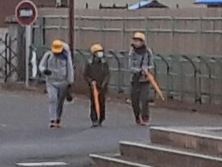 雨の日の校庭掃除